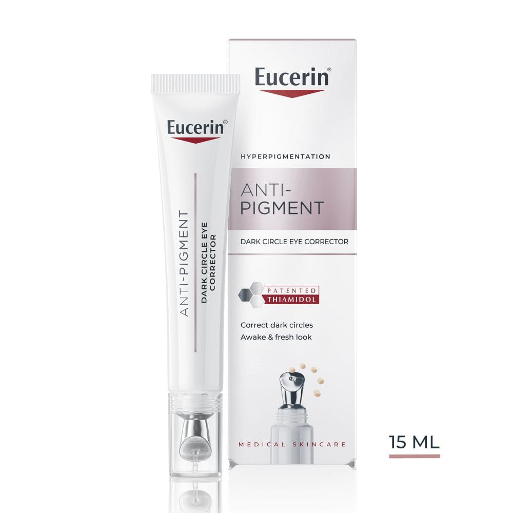 Eucerin Anti-Pigment Oční krém proti tmavým kruhům kombinuje účinné aktivní látky, které působí v různých směrech, aby rozzářily vaši pleť a redukovaly hyperpigmentaci. Přípravek tak rozzáří a vyhladí oční okolí přímo u zdroje.