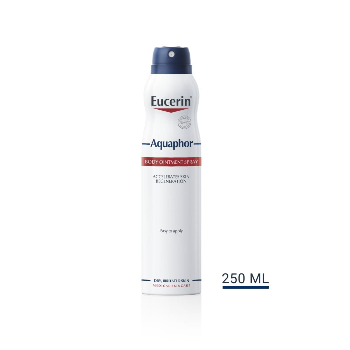 Díky inovativnímu rozprašovači je Eucerin Aquaphor Tělová mast ve spreji nejvhodnější pro použití na větší části těla, jako jsou paže, nohy, záda či trup. Umožňuje rozprašování také dnem vzhůru, je proto vhodná pro zklidnění velmi suché pokožky na těžko přístupných partiích, kde by aplikace klasické masti byla příliš obtížná. Vyvarujte se přímému stříkání na obličej či v jeho oblasti. Pokud máte velmi suchou nebo hrubou pokožku na menších částech těla, vyzkoušejte Eucerin Aquaphor Regenerační mast.