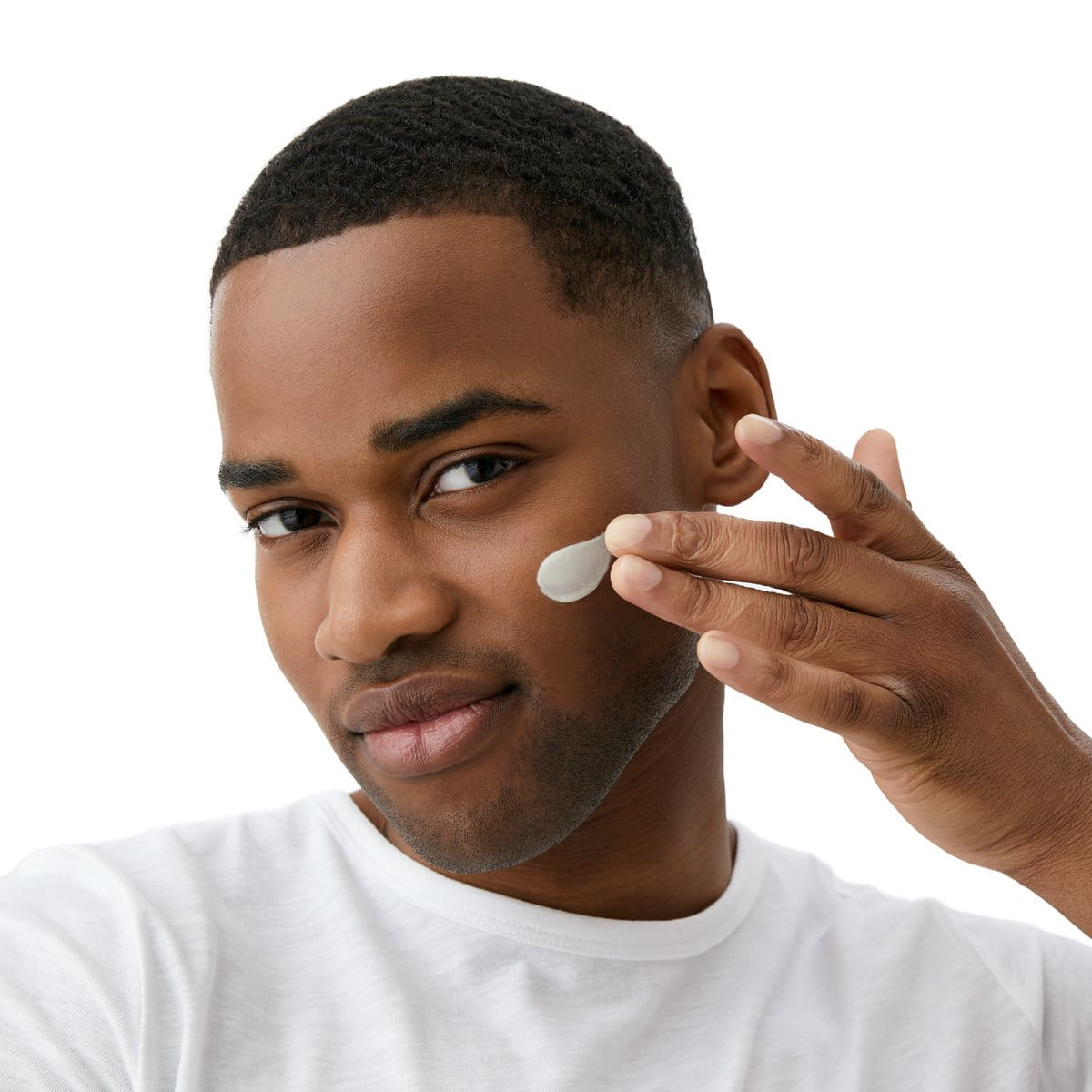 Naneste množství o velikosti zrnka hrášku na pečlivě vyčištěnou pleť obličeje (vyzkoušejte Eucerin DermoPure Čisticí gel)