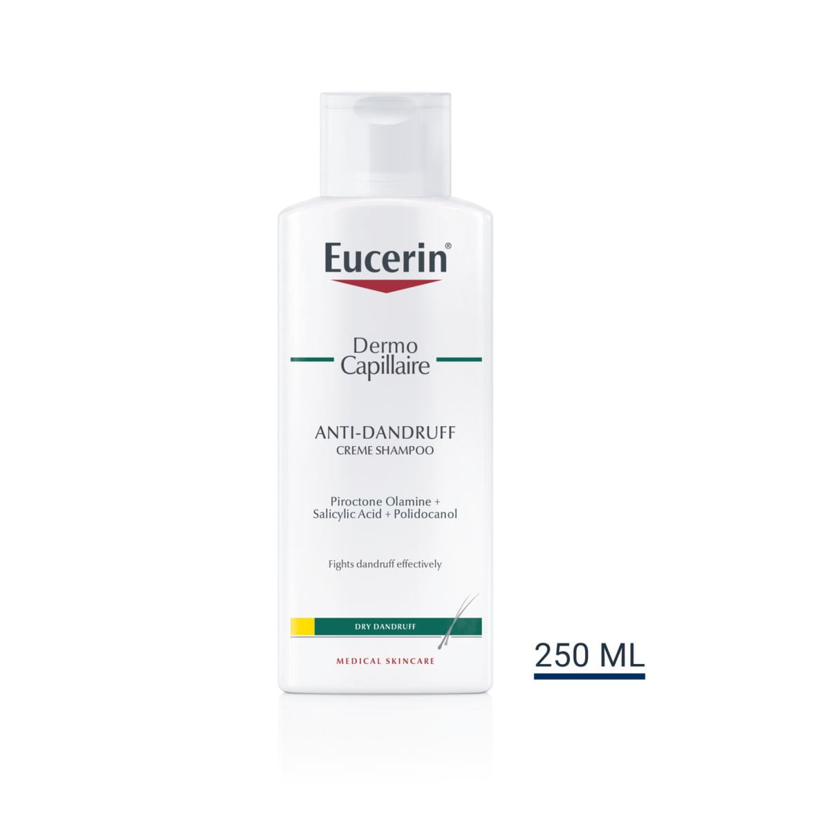 Eucerin DermoCapillaire Krémový šampon proti suchým lupům byl vyvinut speciálně na suché lupy. Jemně zbavuje pokožku a vlasy bílých šupinek a účinně redukuje tvorbu lupů. Jeho šetrné složení zklidňuje vlasovou pokožku, zmírňuje svědění a dodávají vlasům a vlasové pokožce zdravý vzhled.