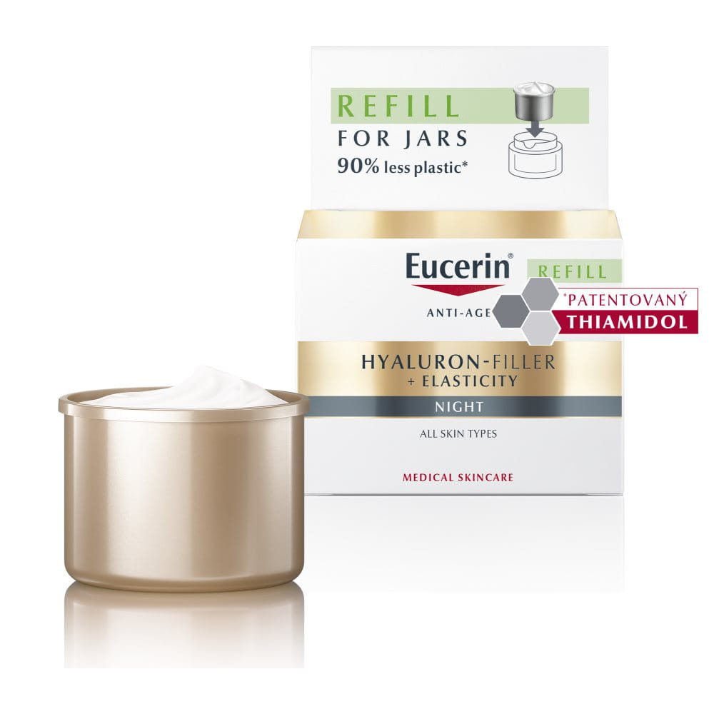 Řada Eucerin Hyaluron-Filler + Elasticity je speciálně vytvořena tak, aby pomáhala vyplňovat hluboké vrásky, redukovat pigmentové (stařecké) skvrny a posilovala pružnost pleti a její zářivost. Inovativní složení obsahuje vysoko- i nízkomolekulární kyselinu hyaluronovou, která viditelně vyplňuje hluboké vrásky zevnitř, zatímco účinná kombinace arctiinu a kreatinu (kolagen-elastin komplex) stimuluje produkci kolagenu a zlepšuje pružnost pleti. Klinicky ověřená složka thiamidol pak redukuje pigmentové skvrny s prvními viditelnými výsledky již za dva týdny.
