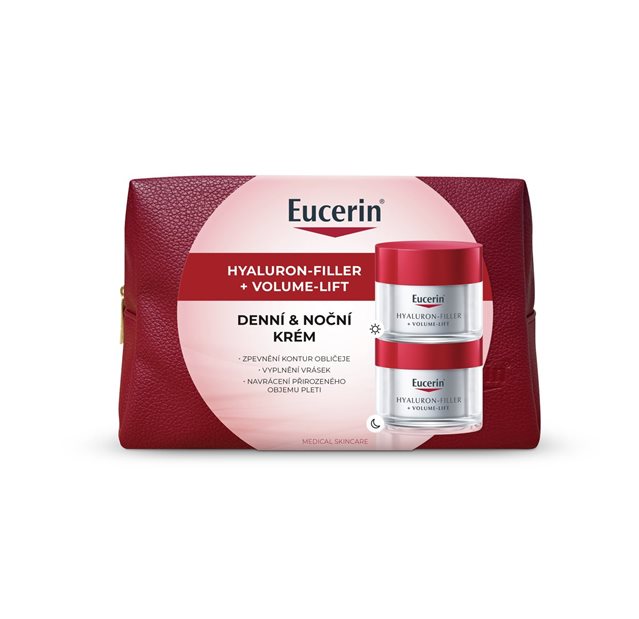Eucerin Hyaluron-Filler + Volume-Lift Denní krém pro normální až smíšenou pleť byl vyvinut speciálně tak, aby vyplňoval hluboké vrásky, navracel pevný tvar konturám obličeje pro liftingový účinek a pomáhal chránit normální až smíšenou pleť před sluncem. Tento denní krém v sobě kombinuje tři účinné složky, které působí cíleně na specifické vrstvy pleti, v nichž dochází ke ztrátě objemu: magnolol zvyšuje množství a velikost buněk zajišťujících objem pleti1, oligopeptidy stimulují síť kolagenních vláken pro pevnější strukturu pleti a kyselina hyaluronová intenzivně pleť hydratuje a vyplňuje hluboké vrásky. Při pravidelném používání pomáhá Eucerin Hyaluron-Filler + Volume-Lift Denní krém obnovit ztracený objem a zpevnit obličejové kontury. Viditelně redukuje jemné linky a hluboké vrásky a pleť je výrazně hladší a pevnější.