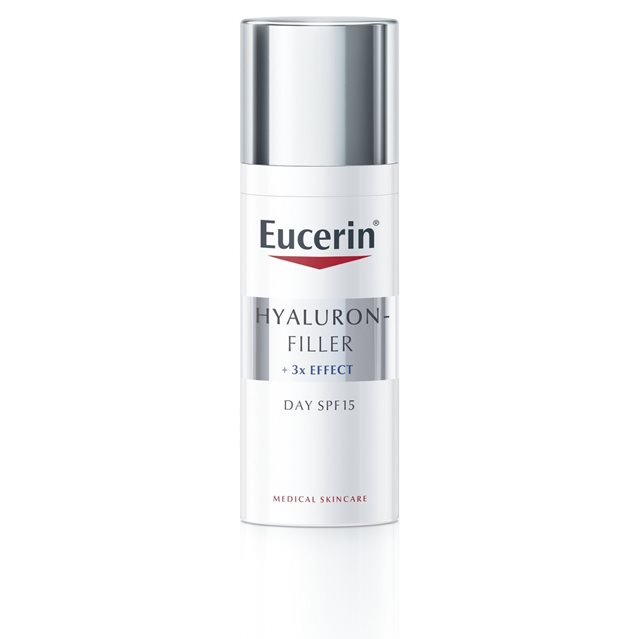 S přibývajícím věkem klesá v pleti vlastní produkce kyseliny hyaluronové, což vede k tvorbě vrásek a staršímu vzhledu pleti. Eucerin Hyaluron-Filler Denní krém SPF 15 s 3x EFFECT složením - se 3 účinky proti vráskám - tento proces zpomaluje: