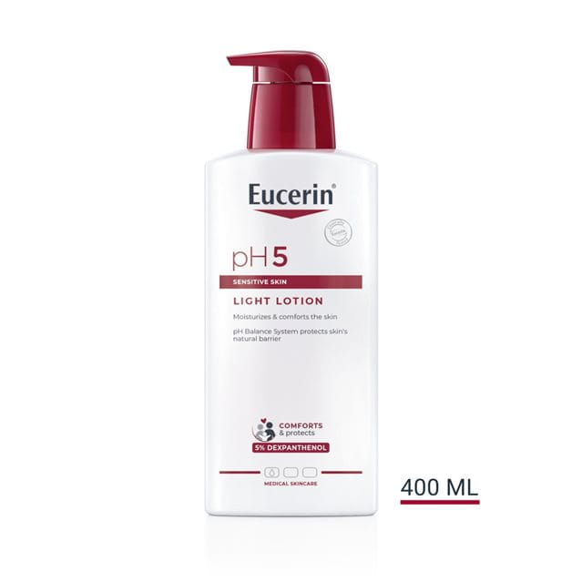 Všechny výrobky Eucerin pH5 byly vyvinuty speciálně tak, aby kombinovaly vynikající ochranu a regeneraci pokožky s klinicky prokázanou kožní snášenlivostí. Eucerin pH5 Tělové mléko - Lehká textura je vhodné pro časté použití na pokožce se sklony k alergiím 1. typu, jako např. senná rýma.