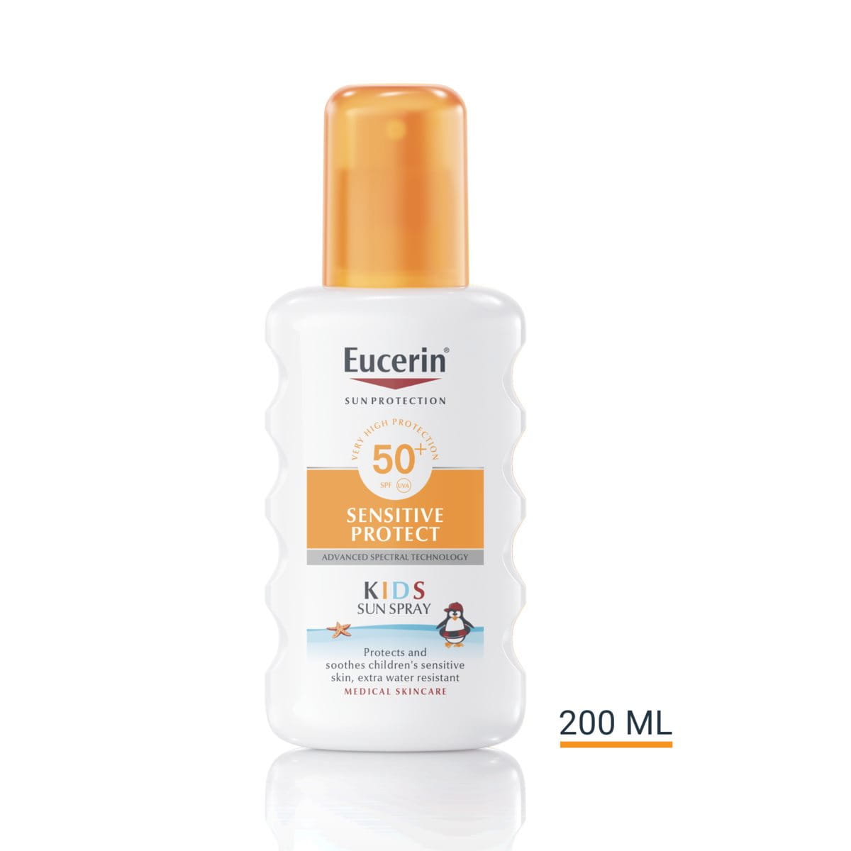 Eucerin Dětský sprej na opalování Sensitive protect s velmi vysokou ochranou SPF 50+ je vhodný pro děti od tří let.